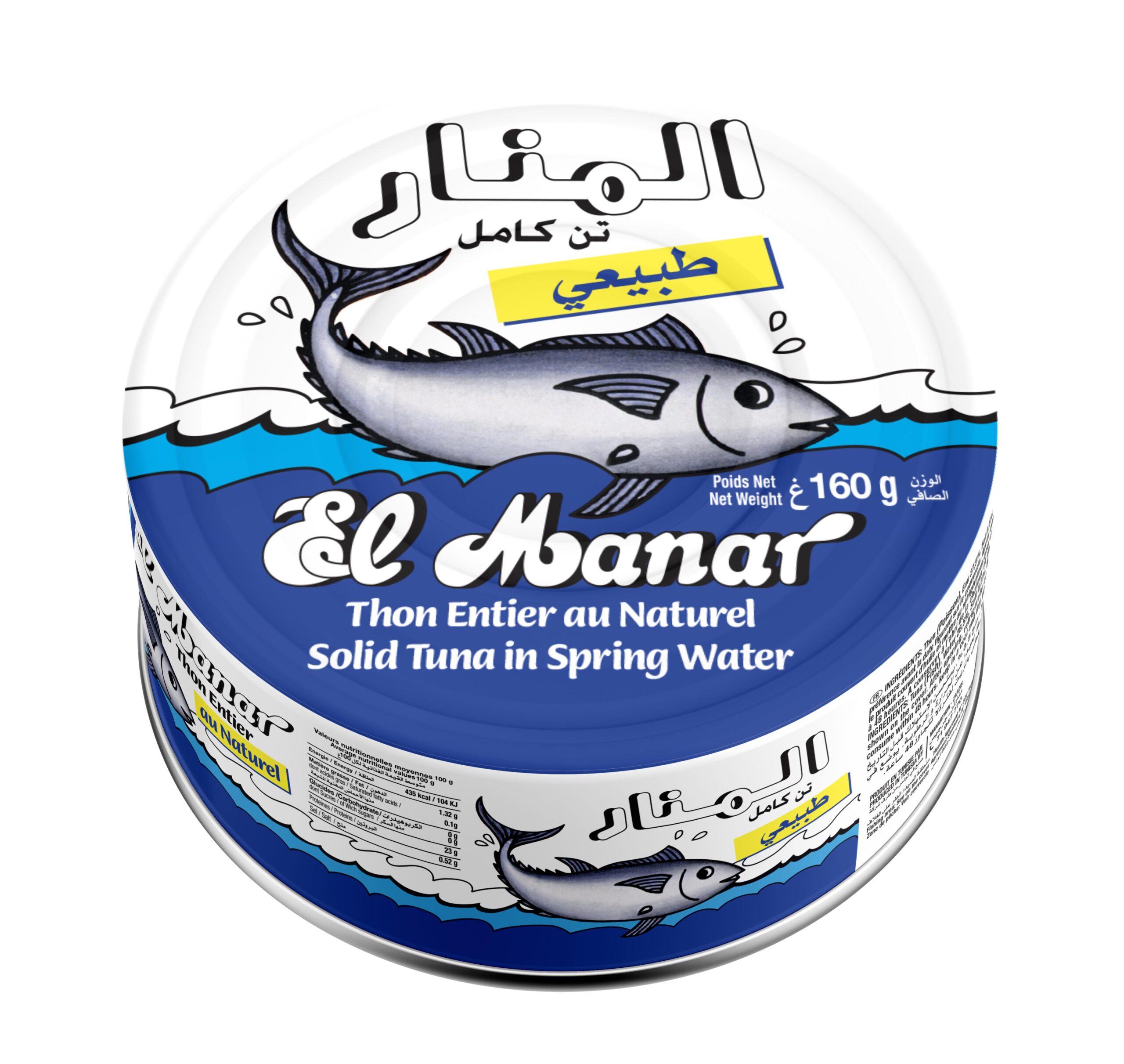 Le thon au naturel El Manar 160g est élaboré à partir de thon rigoureusement sélectionné, conservé uniquement à l’eau, sans huile ajoutée, afin de préserver la saveur naturelle et la texture tendre du poisson. Cette recette simple et maîtrisée met en valeur l’authenticité du thon, sans compromis sur la qualité.