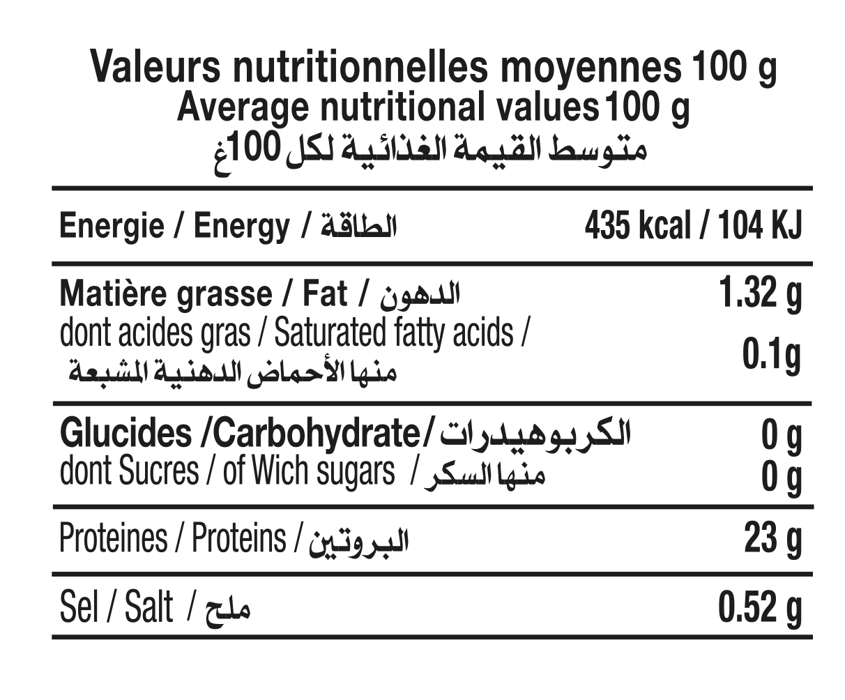 Naturellement riche en protéines de haute qualité, faible en lipides et source d’oméga-3, le thon au naturel El Manar est parfaitement adapté à une alimentation équilibrée. Il convient aussi bien aux sportifs qu’aux personnes soucieuses de leur santé et de leur bien-être.