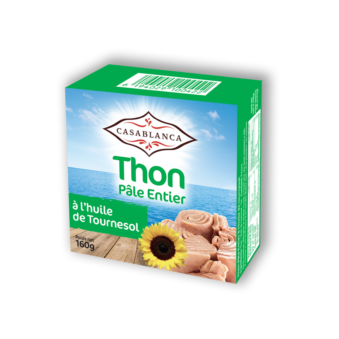 Le thon pâle entier à l’huile de tournesol Casablanca 160 g est un produit de qualité, pensé pour les consommateurs à la recherche d’un thon généreux, savoureux et polyvalent. Préparé à partir de thon pâle soigneusement sélectionné, il est conservé entier afin de préserver sa texture ferme et son goût naturel.